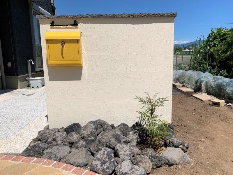 門袖だけだと、とても寂しいですがアクセントに植栽と石が少し入るだけでグッと雰囲気が良くなりますね!