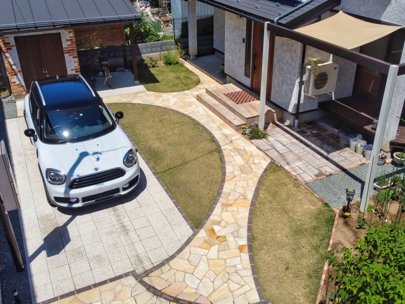 ②No.174 ナチュラルな舗装材を使用した、アプローチと駐車スペース。