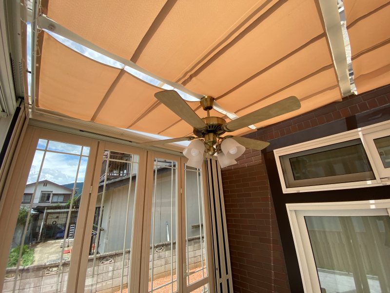 夜でも過ごせるようにシーリングファンを設置しています。