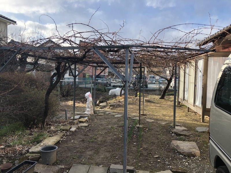 施工前は土の面積が多く、とても手が掛かるお庭でした。