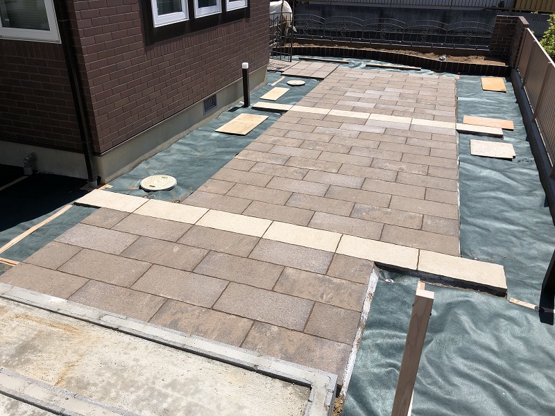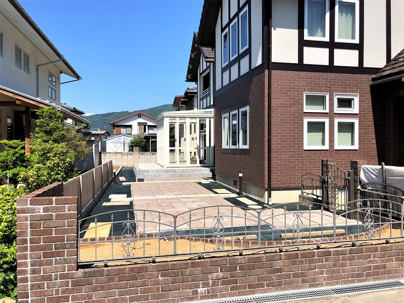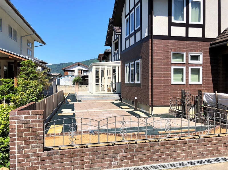 お子様が遊ぶスペースとして、インターロッキングのテラスに。