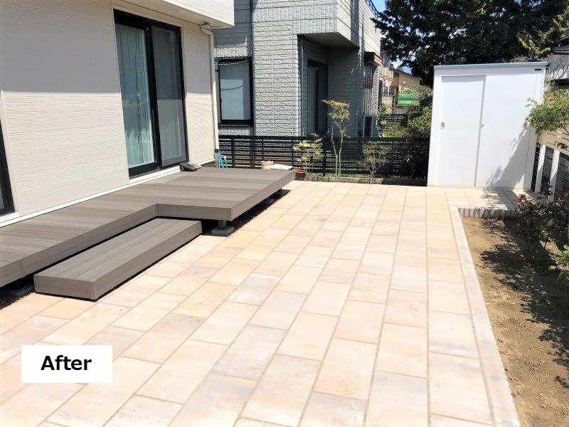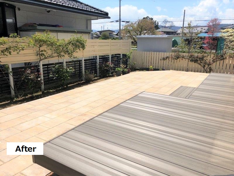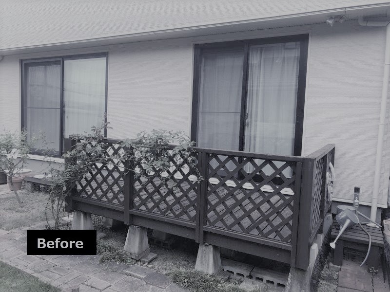 老朽化してしまった天然木のウッドデッキを、人工木材のウッドデッキに。