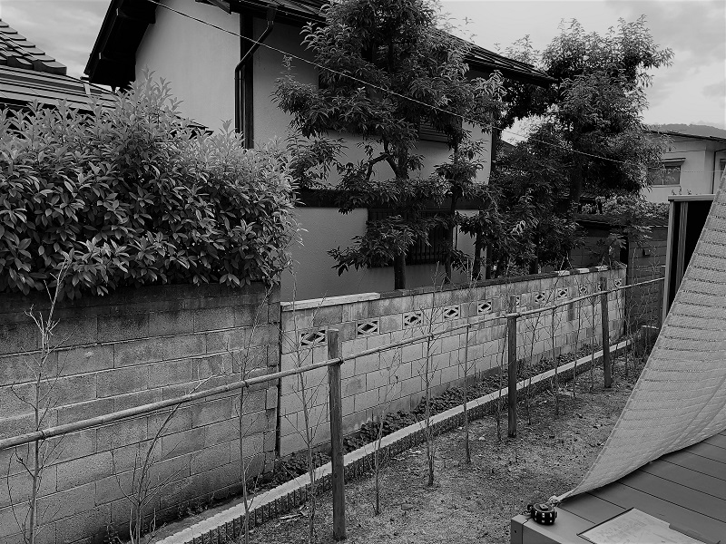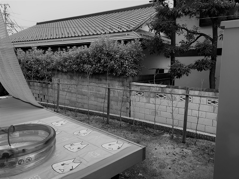 南側はお庭の高さより1mほど低くなっているので、この高さのフェンスでも充分目隠しになっています。