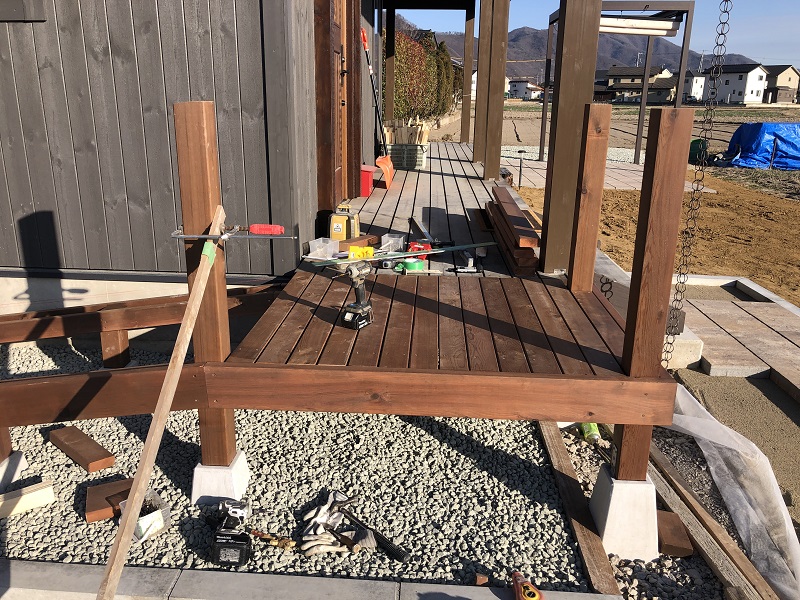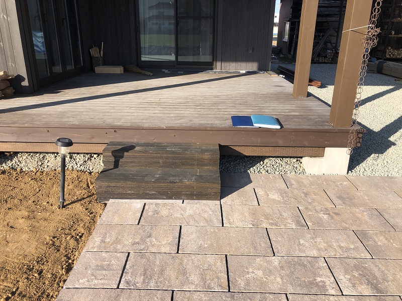 既存のウッドデッキから気軽に出られるように、階段も新設しました。
