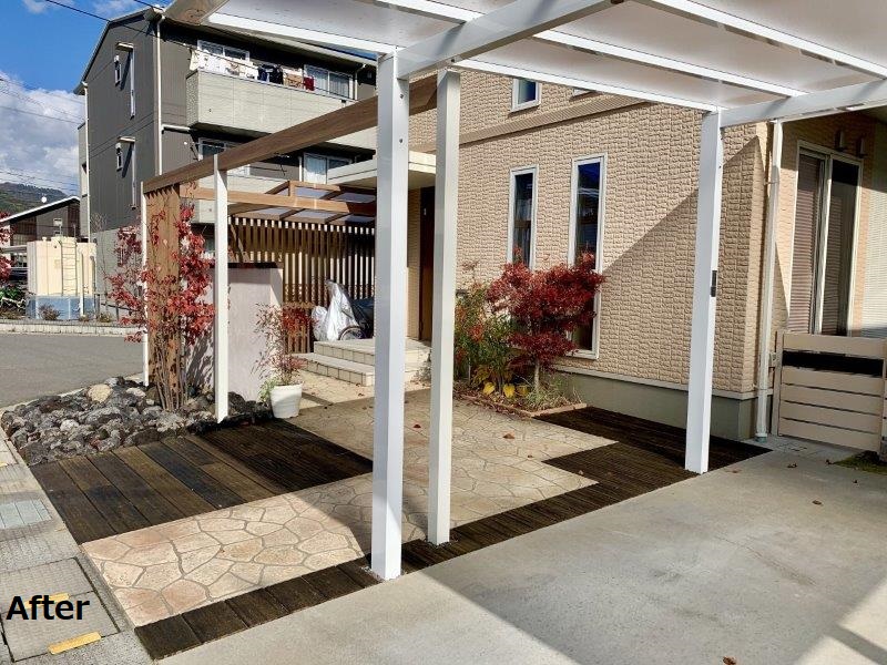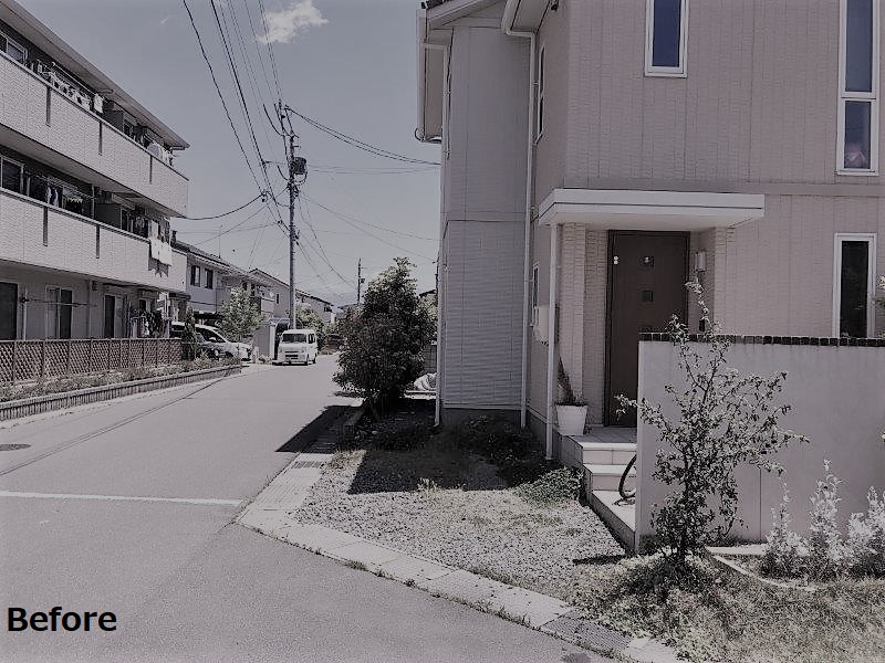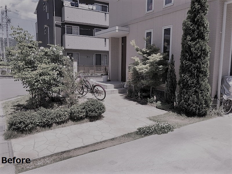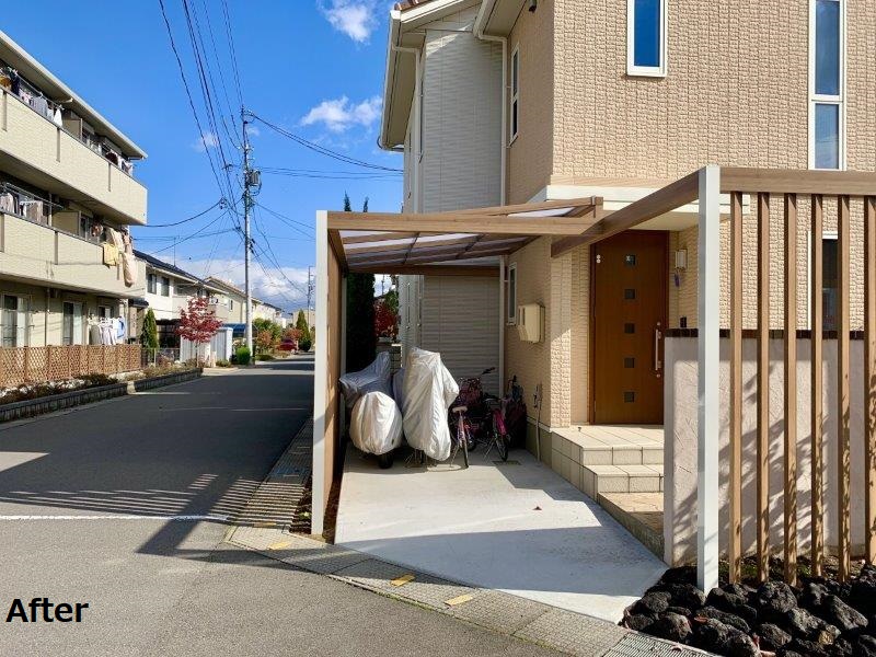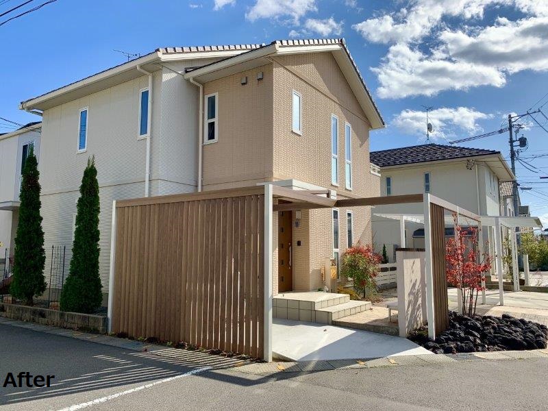 アーチと駐輪スペースを、住宅に合わせたカラーのプラスGでデザインしました。