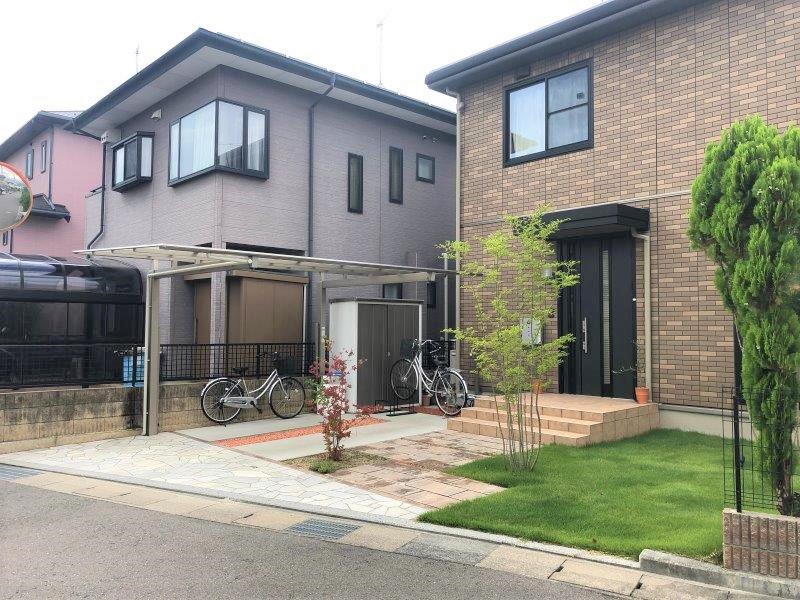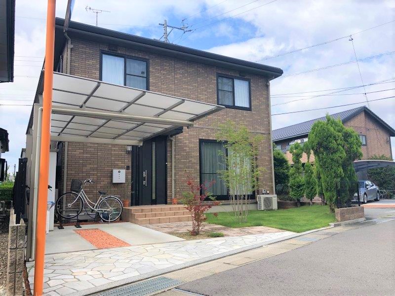 カーポートは、隣地へ雪を落とさないように逆勾配仕様のカーポートを選択。