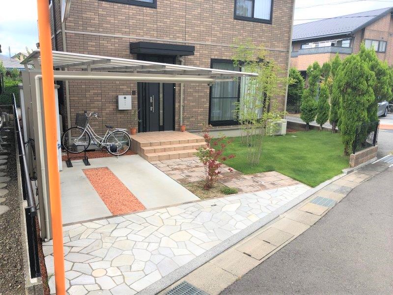 アプローチはインターロッキングで仕上げ、クランクさせています。