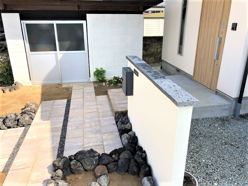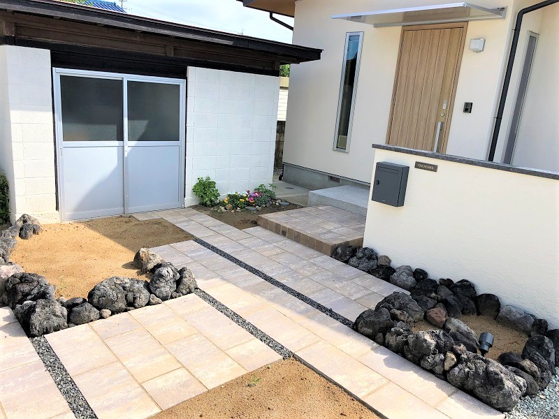 アプローチはSBICのパエリアという、インターロッキングを施工させていただきました。