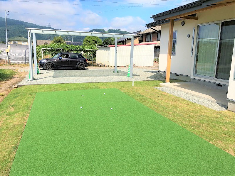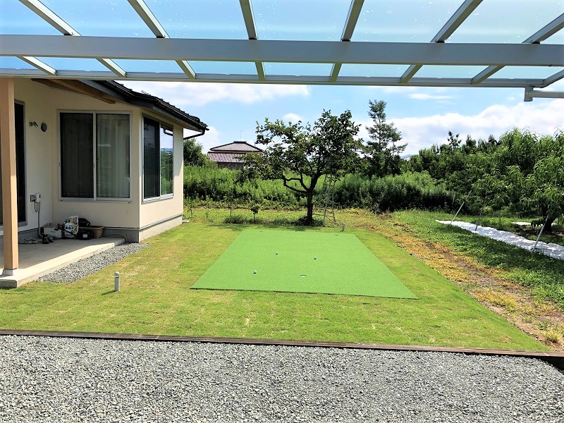 ご主人様の趣味がゴルフとのことでしたので、パッティンググリーンをご提案しました。