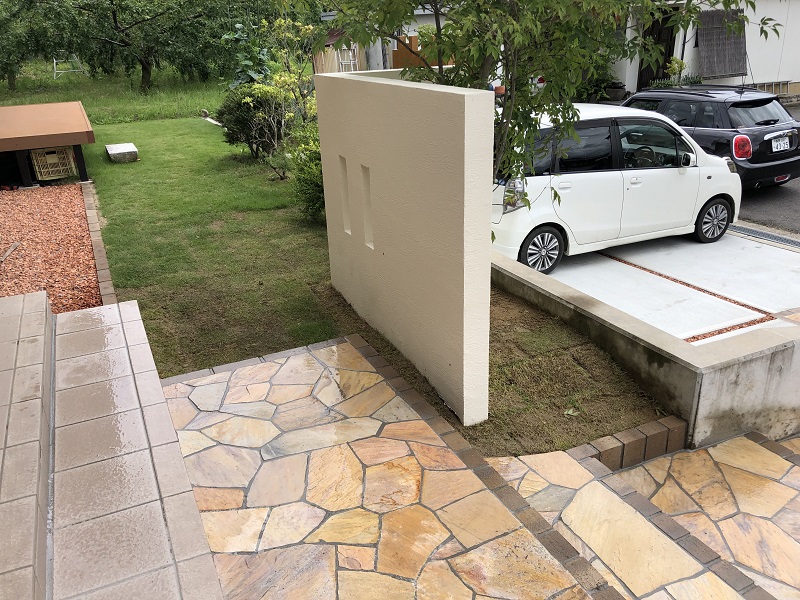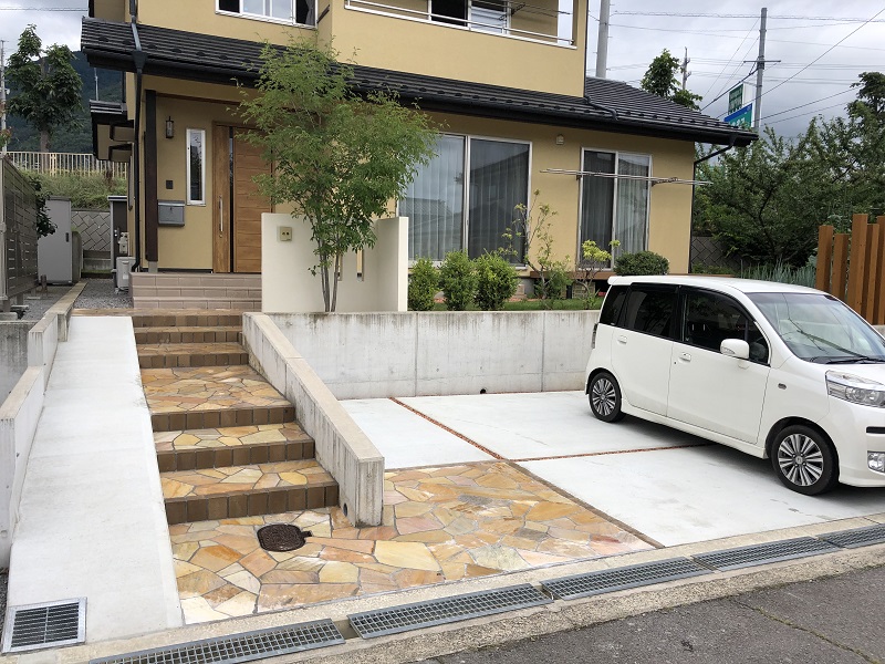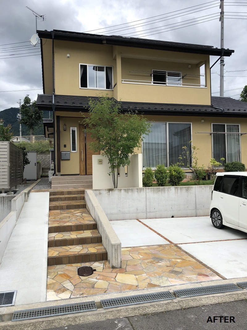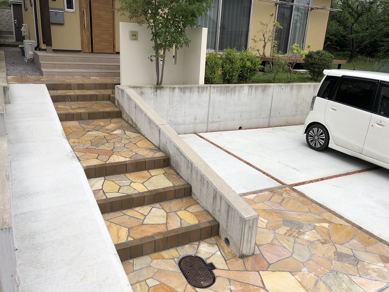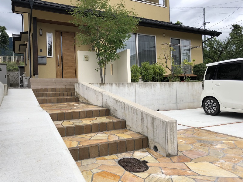 道路から玄関まで高低差のあるお宅の、エクステリア工事をさせていただきました。