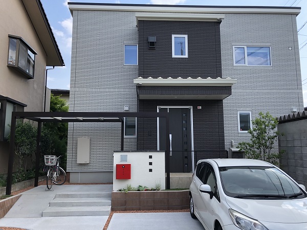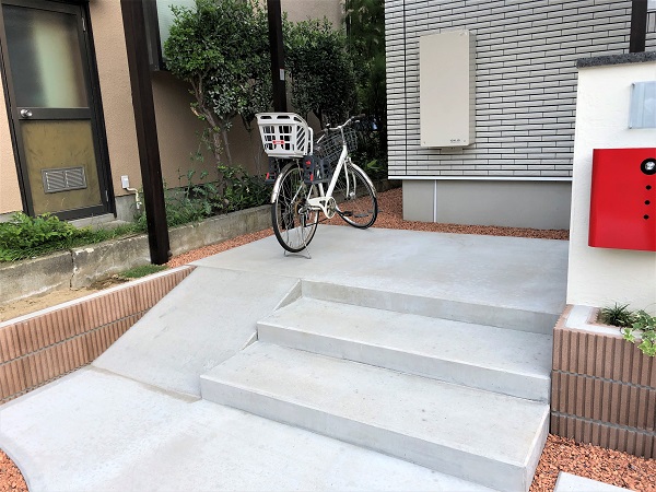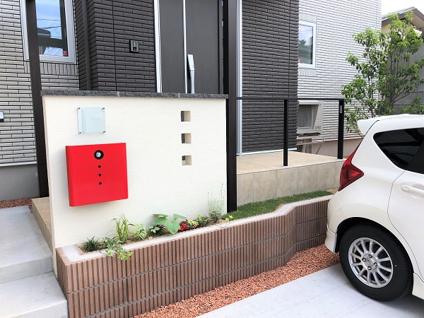 ツートンカラーの住宅とコーディネートした、シンプルなファサード空間が完成しました!