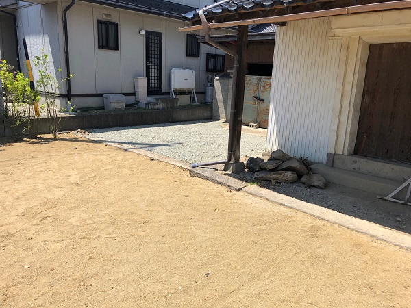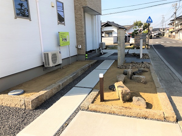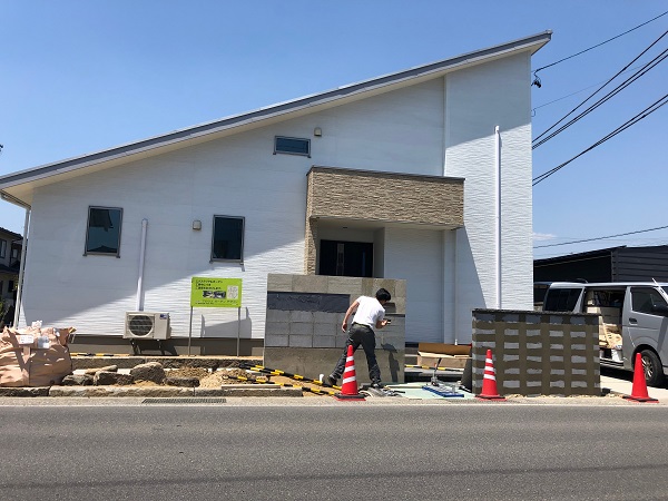 長野市川中島で、車通りの多い道路沿いに建つお宅のエクステリア工事が進んでいます。