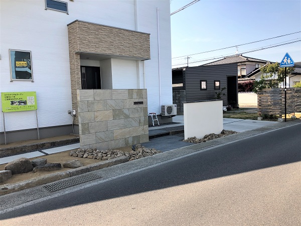 サブウォールの笠石と同素材で、調和を図っています。