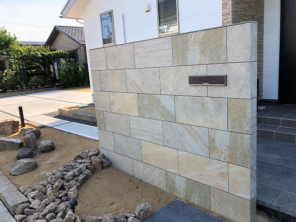 門袖は高級感のあるタイル張りで仕上げています。