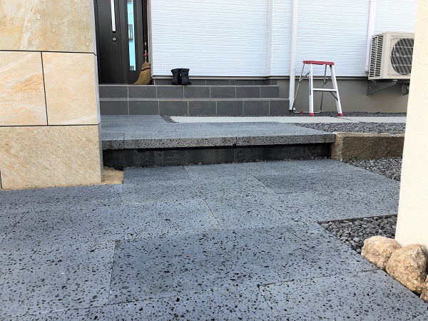 玄関前のアプローチは、溶岩石で。