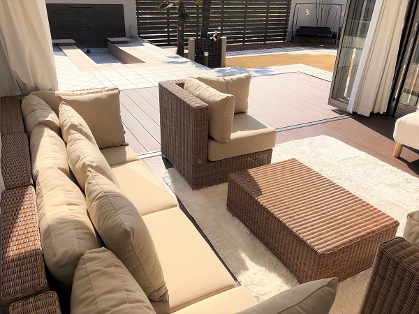 弊社で施工させていただいたガーデンに、新たにガーデンファニチャーセットが仲間入りしました‼