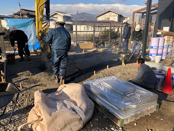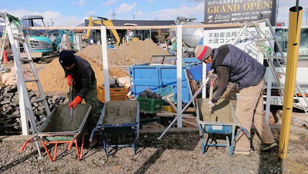ベースコンクリートの上に、化粧ブロックを積んでいきます。