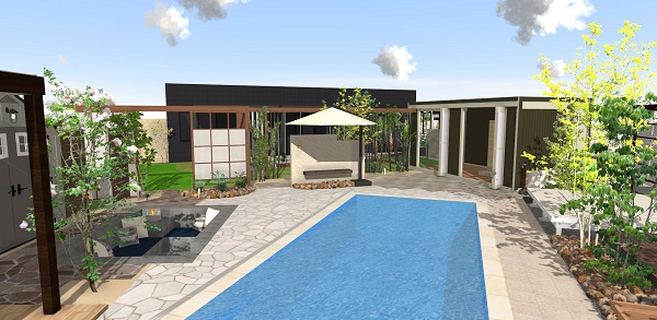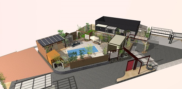 まだ完全版ではありませんが、新展示場ガーデンのイメージ図面です。