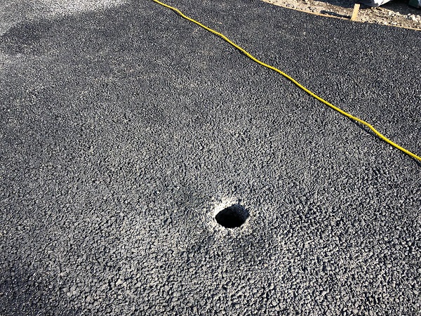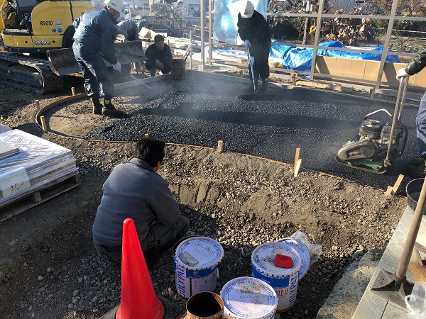 砕石路盤の上に、透水性アスファルトを施工します。