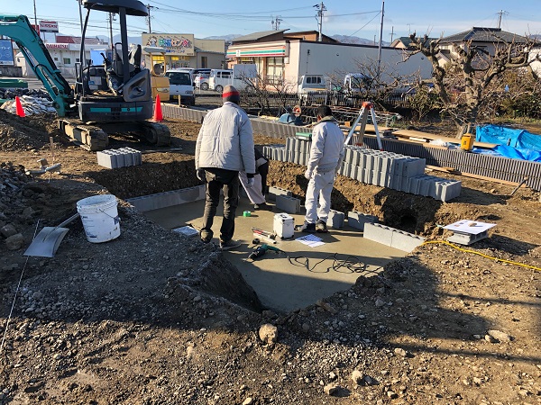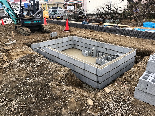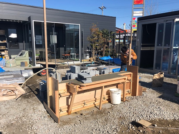 布基礎が出来上がって、この後は下地ブロックを積んでモルタル造形を施します。