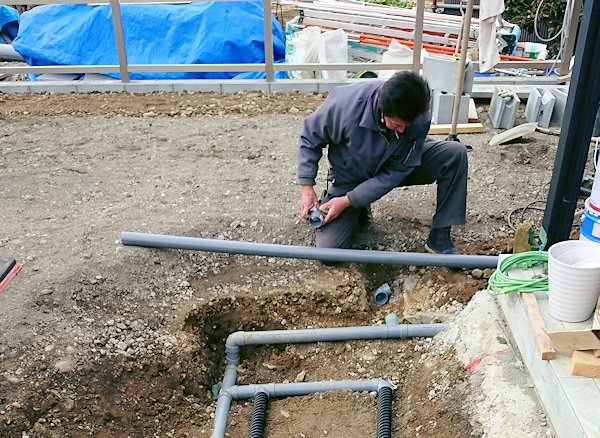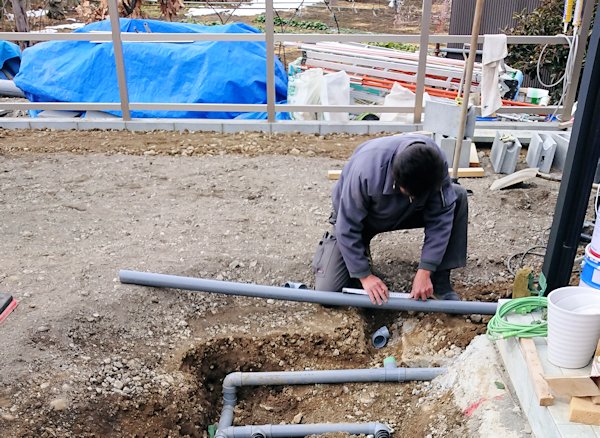 バンカー設置部分の暗渠排水管工事。