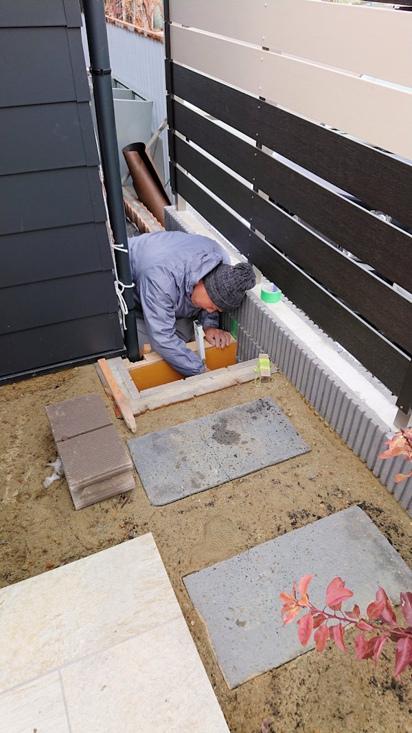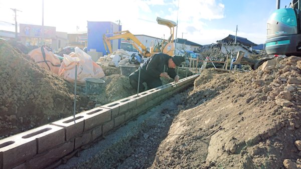 ベースコンクリートの上に、化粧ブロックを積んでいきます。