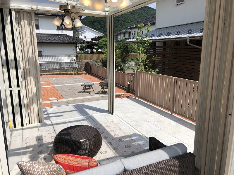 ガーデンルームを中心に設計した庭は、とても過ごしやすい空間になっています。