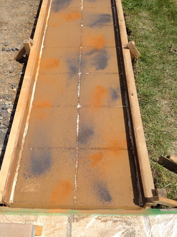 全体的にコテで押さえて、上から更に色粉を撒きます。
