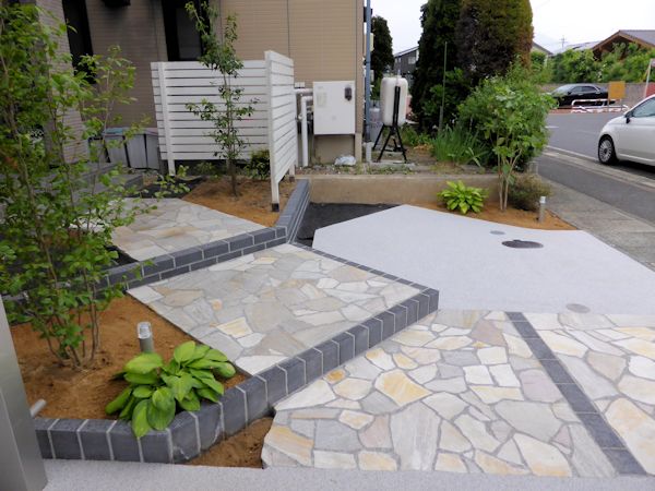 アプローチの石張りも舗装材のリンクストーンもホワイト系に