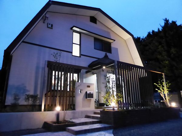それぞれの光がそのスリットの間から漏れて、家の中からも外からも楽しめる夜の雰囲気です。