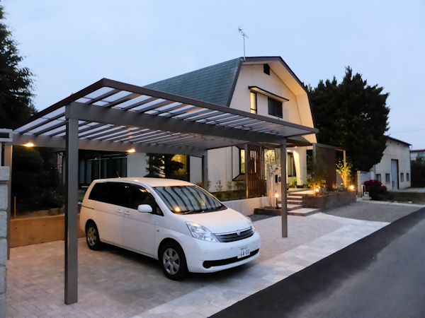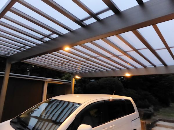 カーポートの屋根下にも照明を設置。