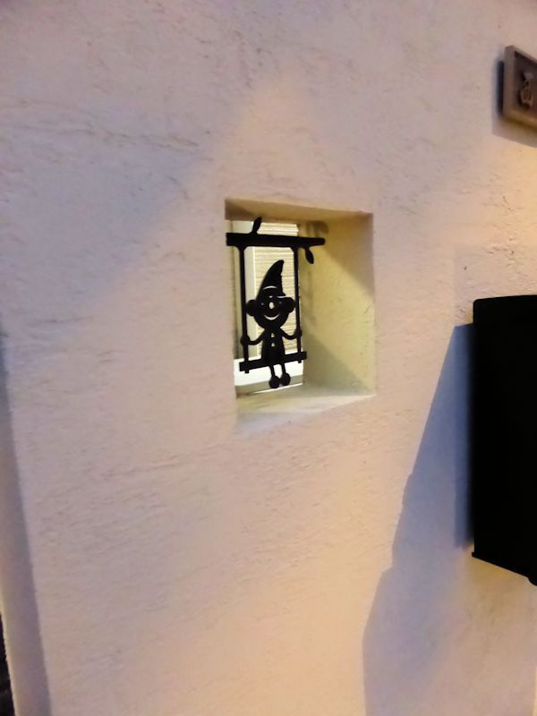 門柱のアクセントに、アイアン製の可愛い小人。