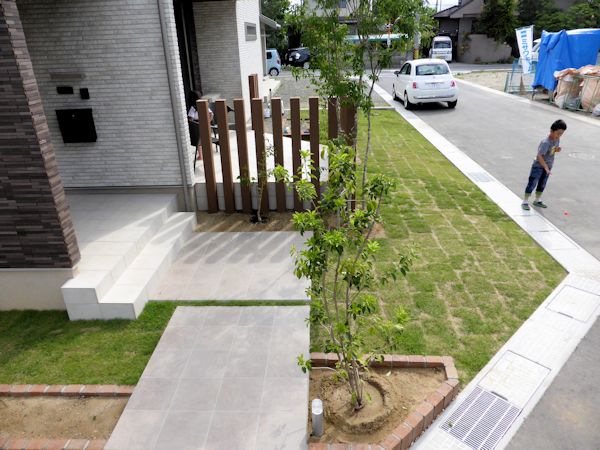 芝生の成長と、お施主様に植えていただく花壇内の草花が楽しみですね!