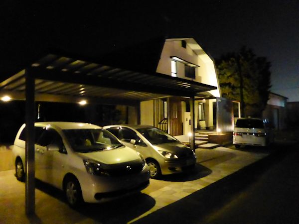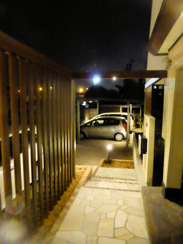 ゲートに取り付けたダウンライトが、おしゃれです。