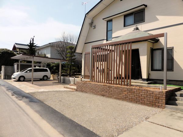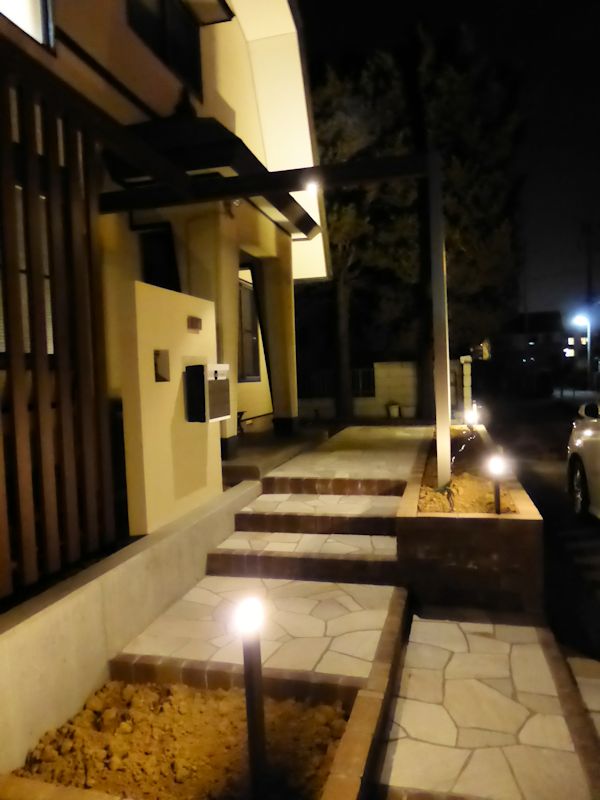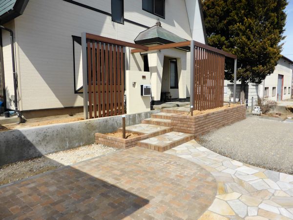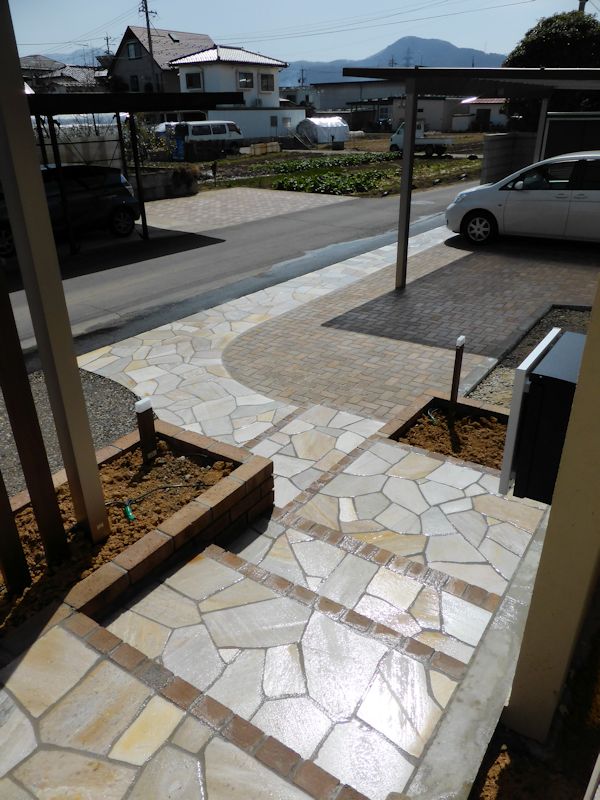 アプローチ素材の天然石を間口一杯に施工し、より広く見せることが出来ました。