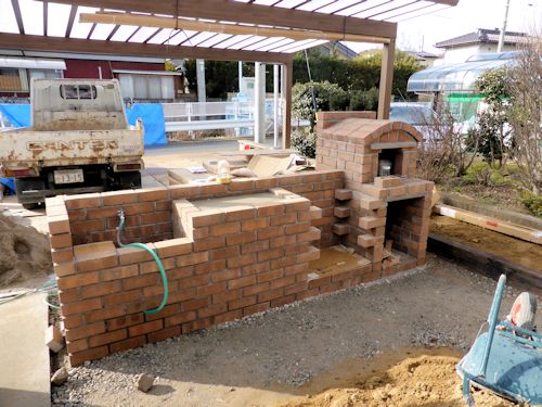 レンガ製のピザ窯・BBQ・シンクも完成しました‼
