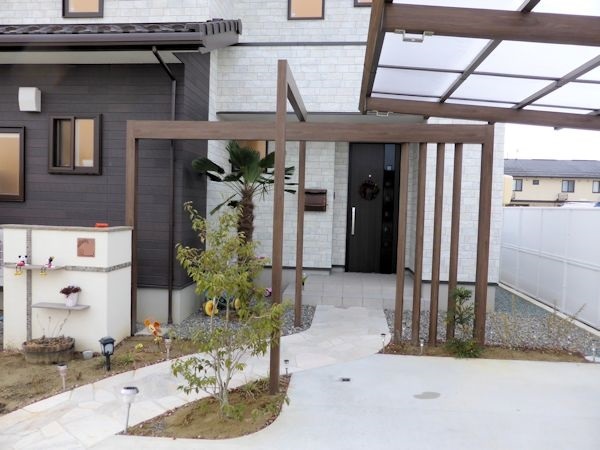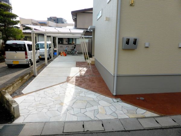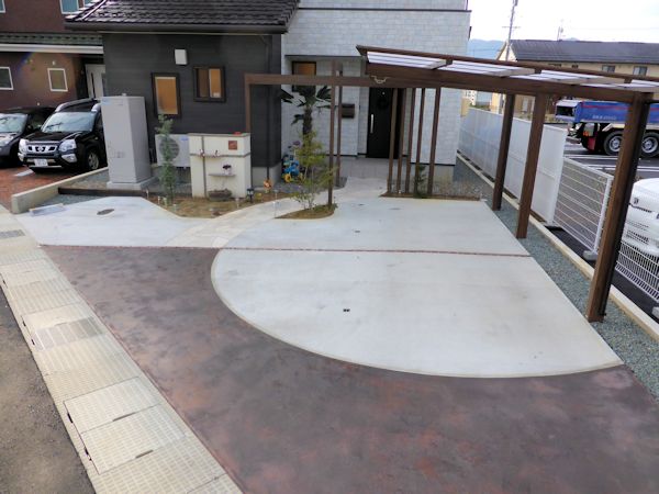 駐車場の前面部分からアプローチまで、大きな円弧を描いた