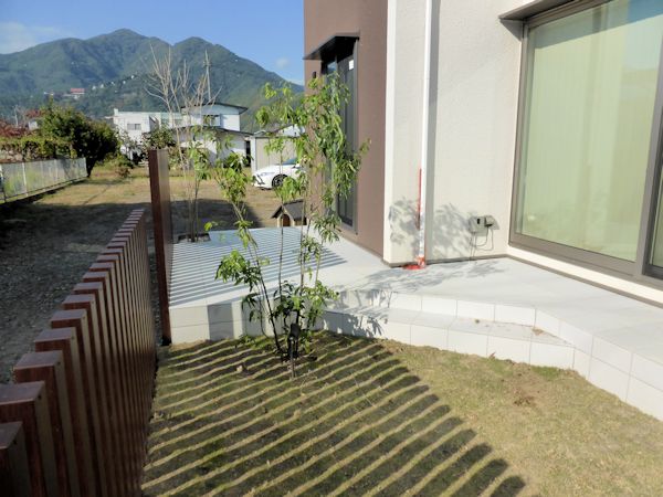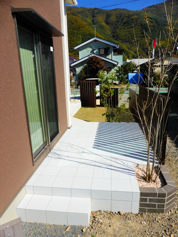 タイルテラスの部分は、タイルの分だけ高く施工。