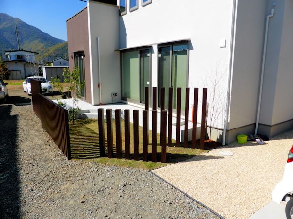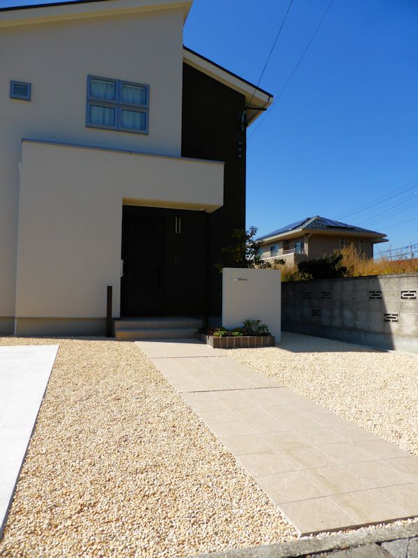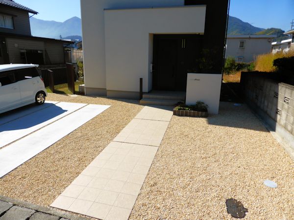 そして既に完成されていたアプローチと駐車場周りは、化粧砂利で敷き詰めました。