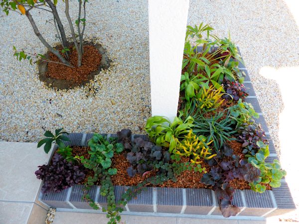 花壇には、カラーリーフが楽しめる宿根草をメインとした草花で彩りを。