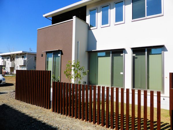 角柱などを並べて立ててフェンスの役割を持たせるものを、