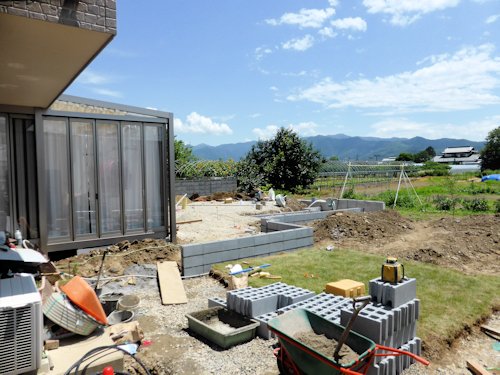 土をたくさん盛って、ガーデンルームと同じ高さの