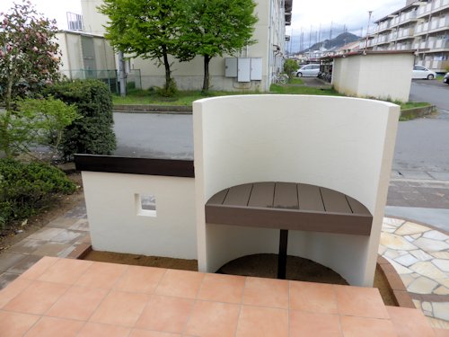 サブ門柱の方は、天端(てんば)に鉢植えを置ける笠木を取り付け。