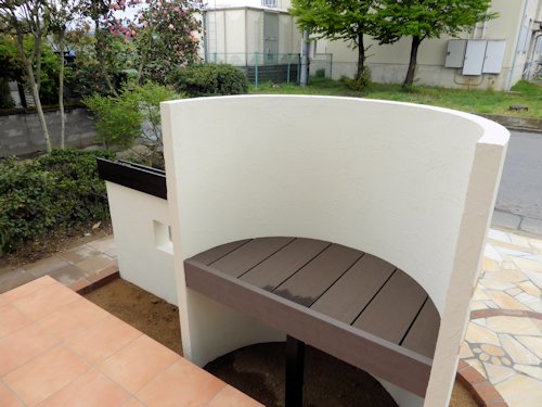 内側にはベンチ。