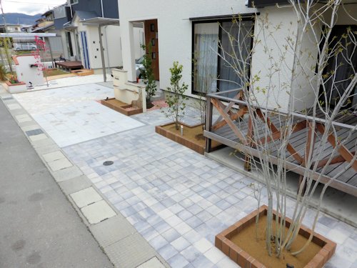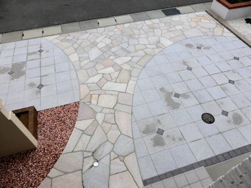 こちらも、普段車が止まっているところ以外は石張りとインターロッキング。