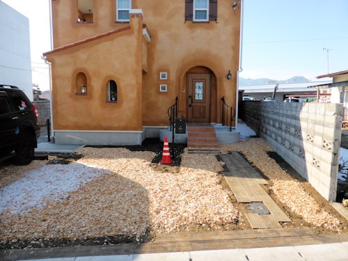 春になったら芝張りと植木を植えて完成です。