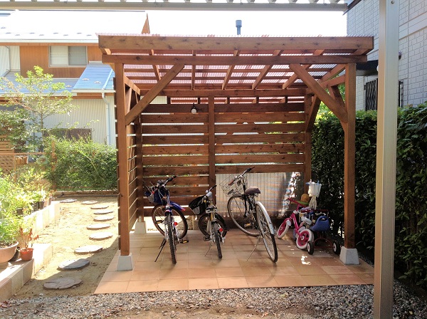 ナチュラルな天然木製の自転車置き場が完成しました。