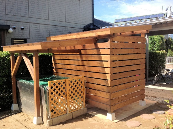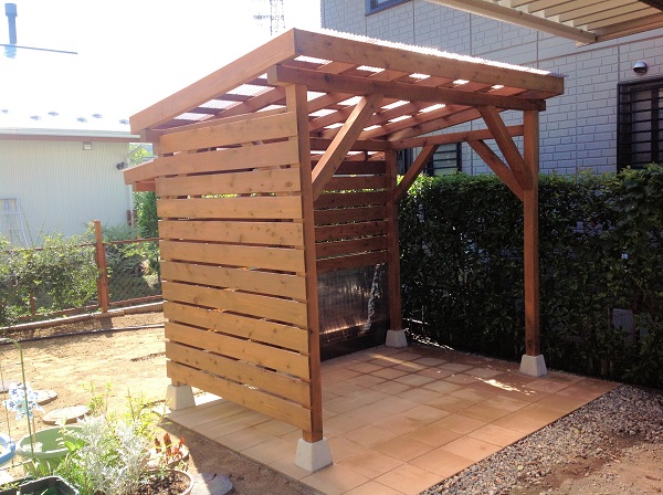 材木はレッドシダーで屋根はポリカ波板です。
