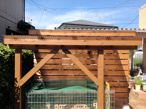 裏側には、なんとウサギ小屋を連結!