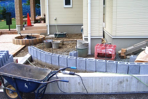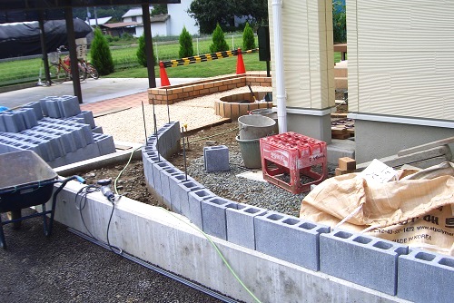 今のところ、レンガ花壇と化粧砂利敷きが終わりました。